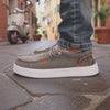 A nossa palmilha é revestida com cortiça verdadeira – um material natural sustentável, que não é apenas agradavelmente leve, mas também respirável e regulador de temperatura. A cortiça adapta-se suavemente ao teu pé e apoia um clima saudável e seco para os pés – mesmo após uso prolongado.