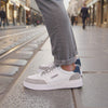 A superfície em cortiça verdadeira não só proporciona conforto adicional, como também sublinha o nosso compromisso com materiais ecológicos. A base da palmilha em EVA de alta qualidade garante-te um passo especialmente macio e elástico – dia após dia.